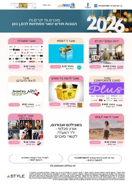 המבצעים לעיל כפופים לתנאים השונים המפורטים בעמוד ההטבה הרלוונטי באתר .ההטבה למשלמים בכרטיס אשראי קורפורייט ליסו"ב